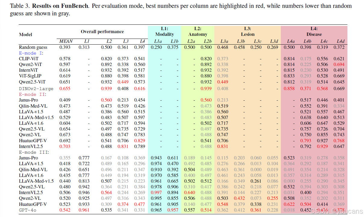 本文提出 FunBench,一个新颖的视觉问答(VQA)基准,旨在全面评估MLLMs的眼底阅读能力。FunBench在四个层次上具有分层任务组织(模态感知、解剖感知、病变分析和疾病诊断)。它还提供三种针对性的评估模式:基于线性探测的VE评估、知识提示的LLM评估和整体评估。