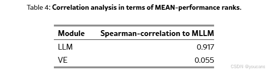 总体而言,现有模型表现出相当有限的眼底阅片能力。如表4所示,多模态大语言模型与其对应大语言模型之间的高度等级相关性明确显示:前者在执行眼底阅片任务时严重依赖后者。虽然视觉编码器与大语言模型均至关重要,但相关性分析结果强调了开发强大眼科领域大语言模型的迫切需求。