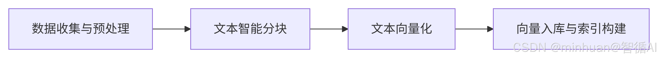 构建可检索的知识底座,该阶段的核心是将非结构化知识转化为向量数据库可存储、可检索的格式,为后续检索做准备,步骤如下: