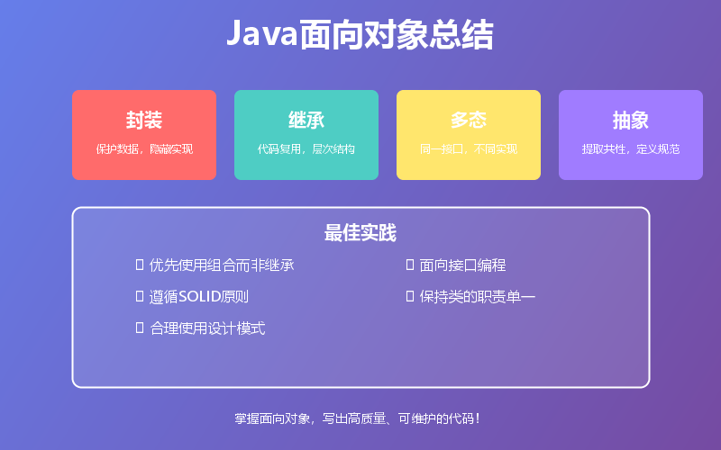 在Java编程世界中,面向对象编程(OOP)是最核心的编程范式。无论是开发企业级应用、Android应用还是大数据处理,掌握面向对象的思想都是成为优秀Java开发者的必经之路。
