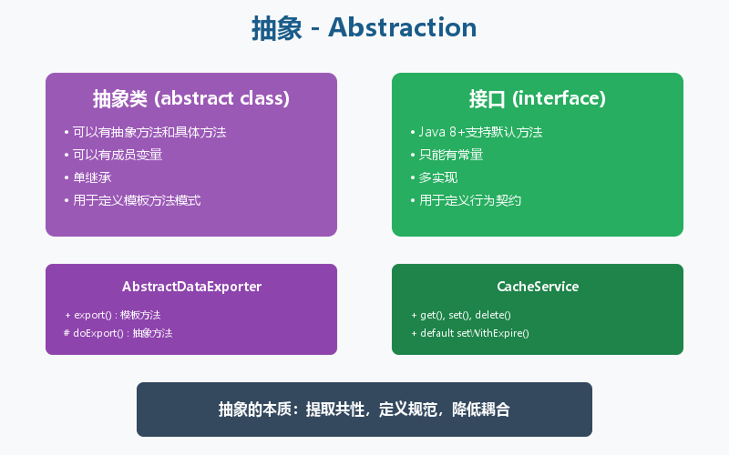 本文将深入浅出地讲解Java面向对象的四大特性:封装、继承、多态、抽象 ,结合Spring框架等生产级代码示例,帮助你真正理解OOP的精髓。