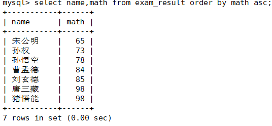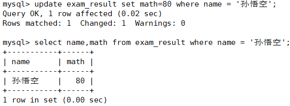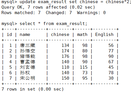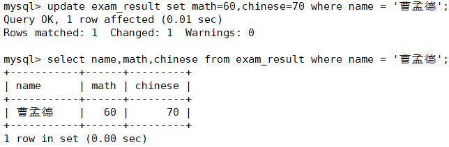 将曹孟德同学的数学成绩变更为60分,语文成绩变更为70分