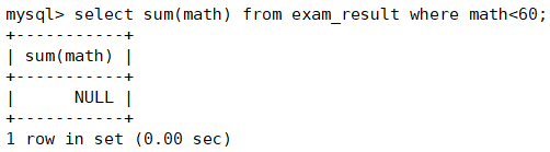 不及格 < 60 的总分,如果没有结果,返回 NULL