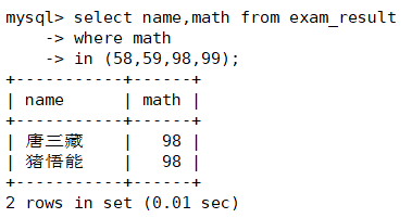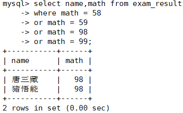 数学成绩是58或者59或者98或者99分的同学及数学成绩