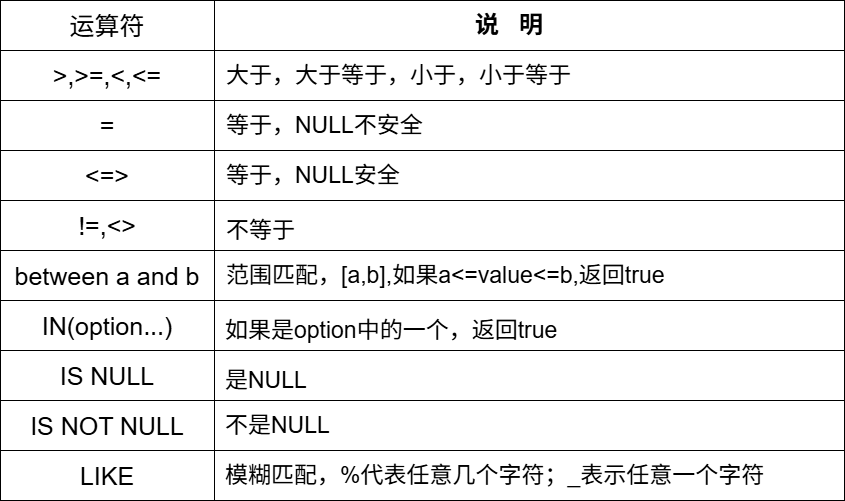 判断通常需要比较,where有两种比较:比较运算符和逻辑运算符