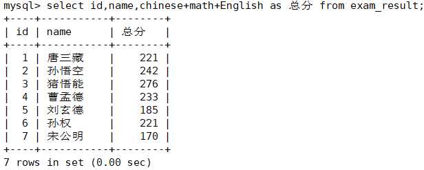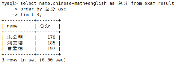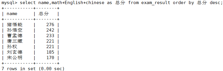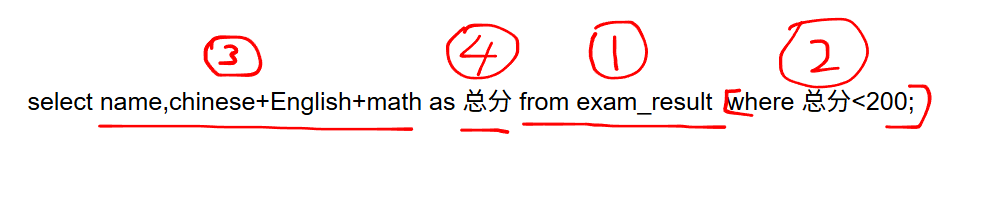 总分是指所有成绩的总和,表中没有这个字段,说明要用别名