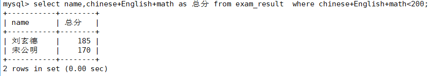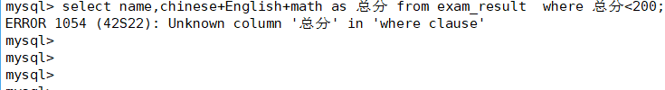 我们发现,where识别不了总分,说明where语句里不能使用别名!
