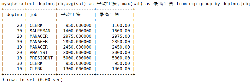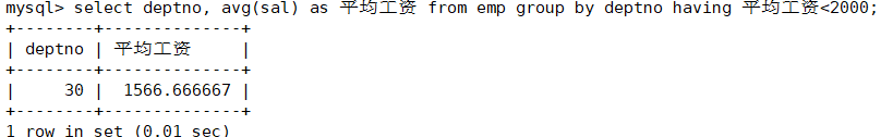 它们两个的区别:where在group by之前就进行筛选了,having是分组再进行筛选。where 中不能直接使用聚合函数,having可以。
