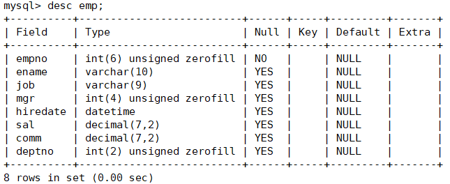 准备工作,创建一个雇员信息表(来自oracle 9i的经典测试表)