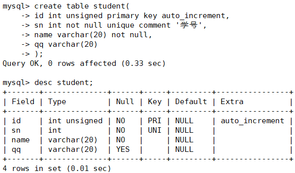 id INT UNSIGNED PRIMARY KEY AUTO_INCREMENT,