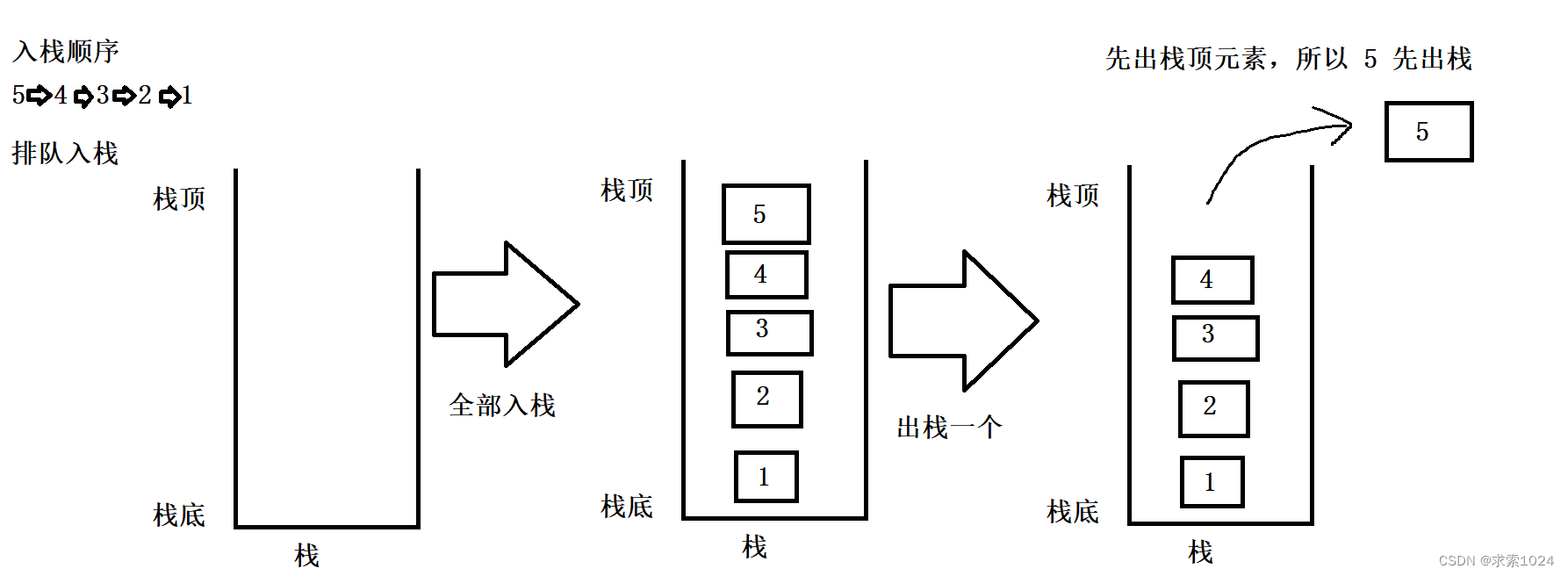 出栈:栈的删除操作叫做出栈。出数据也在栈顶。