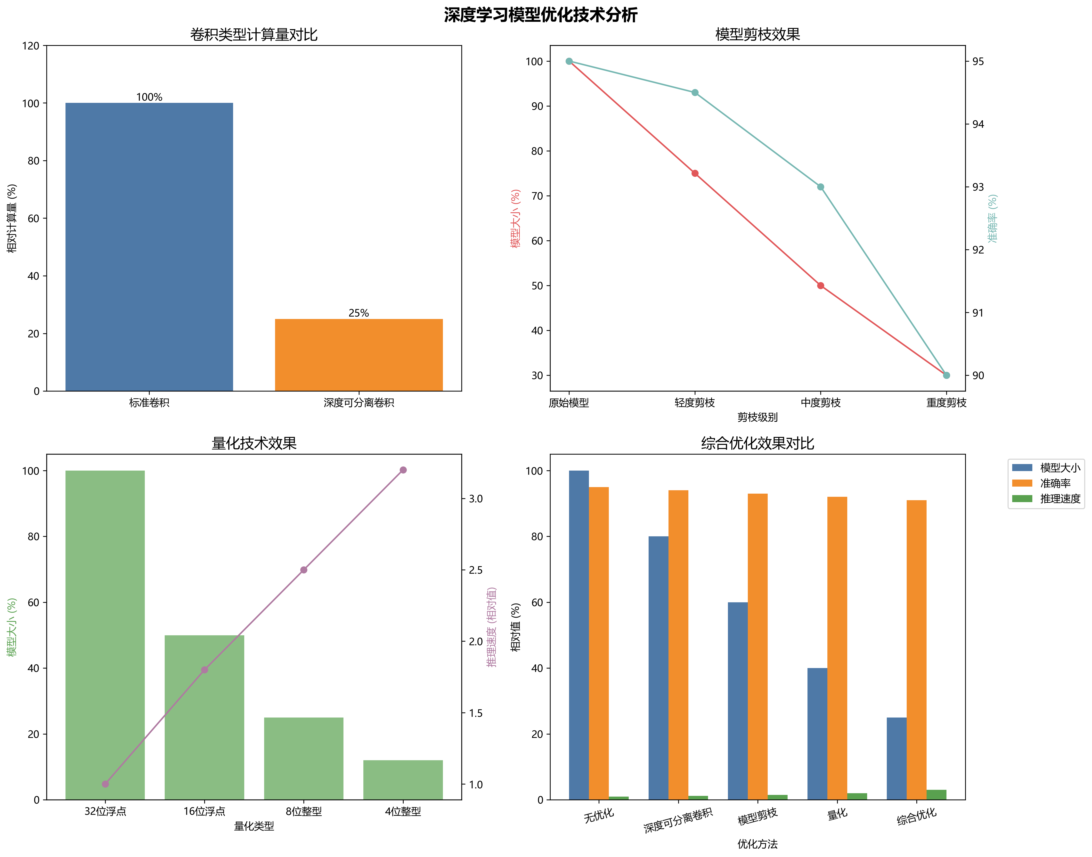 - 使用深度可分离卷积替代标准卷积,减少计算量