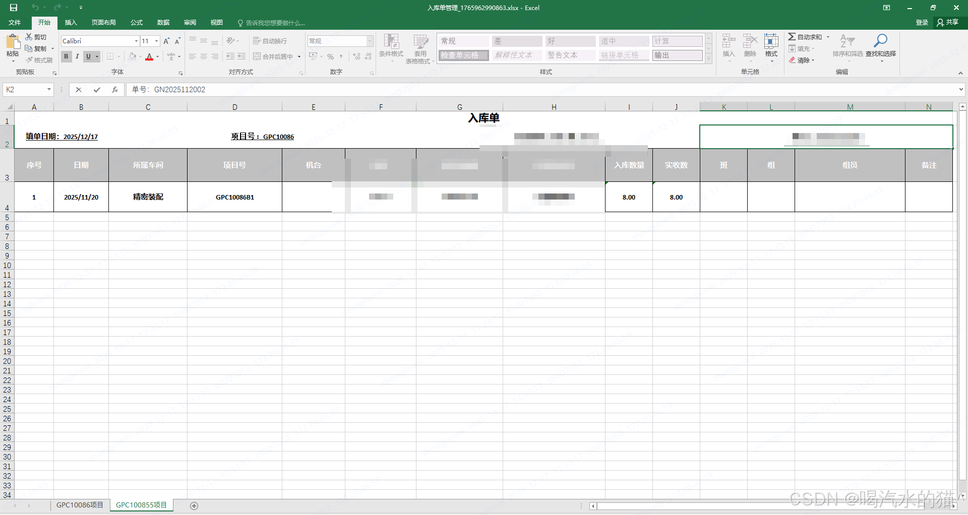 // 4. 项目号(Excel第4列,格式如GPC25061095B2,用于分组Sheet)