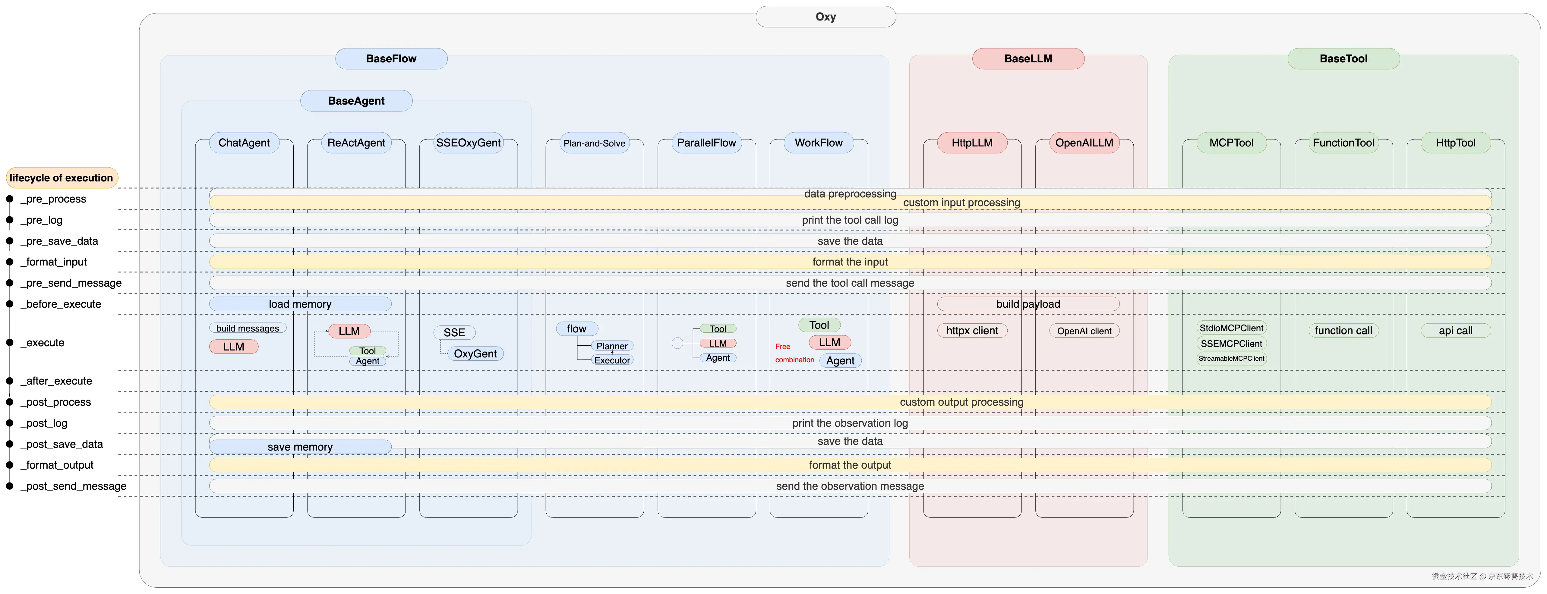 OxyGent是京东零售开源的多智能体协作框架:将 Agent、Tool、LLM 和 Flow 统一抽象为可插拔的原子 AI 组件 Oxy,开发者可以像搭积木一样灵活组合构建多智能体系统: