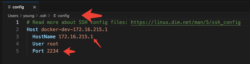 - "2234:2234" # SSH端口映射,用于VSCode远程连接