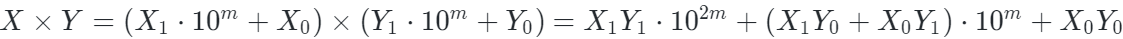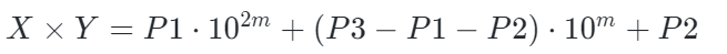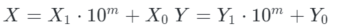 其中X1和Y1是高位部分,X0和Y0是低位部分,m是位数的一半。
