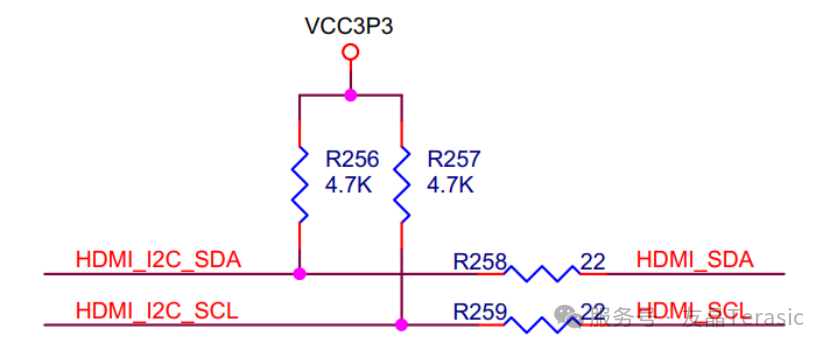 所以FPGA和外设之间要有个上拉电阻,如下是DE10-Nano的相关电路图:
