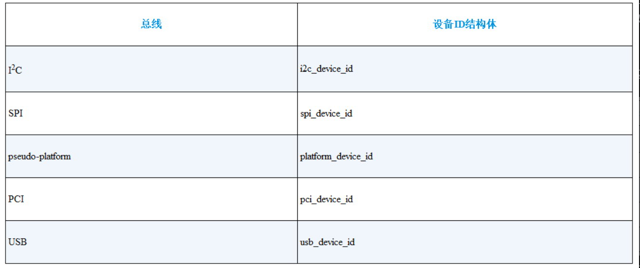 x86 系统中,驱动通过这个表匹配 ACPI 表中的设备信息,替代设备树的作用。