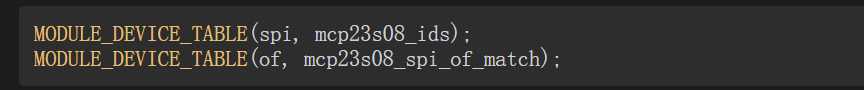 compatible = "microchip,mcp23s08"; // 匹配驱动的of_match_table