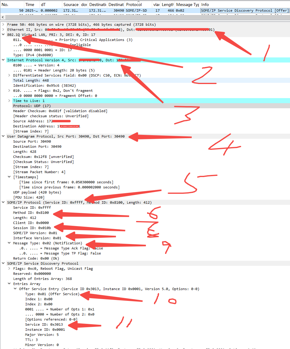 任何流量包都少不了mac和ip和port,对应图中1,3,4,这是定位到目标的必要条件,注意这里soa的udp port一般都是30490,统一标准。