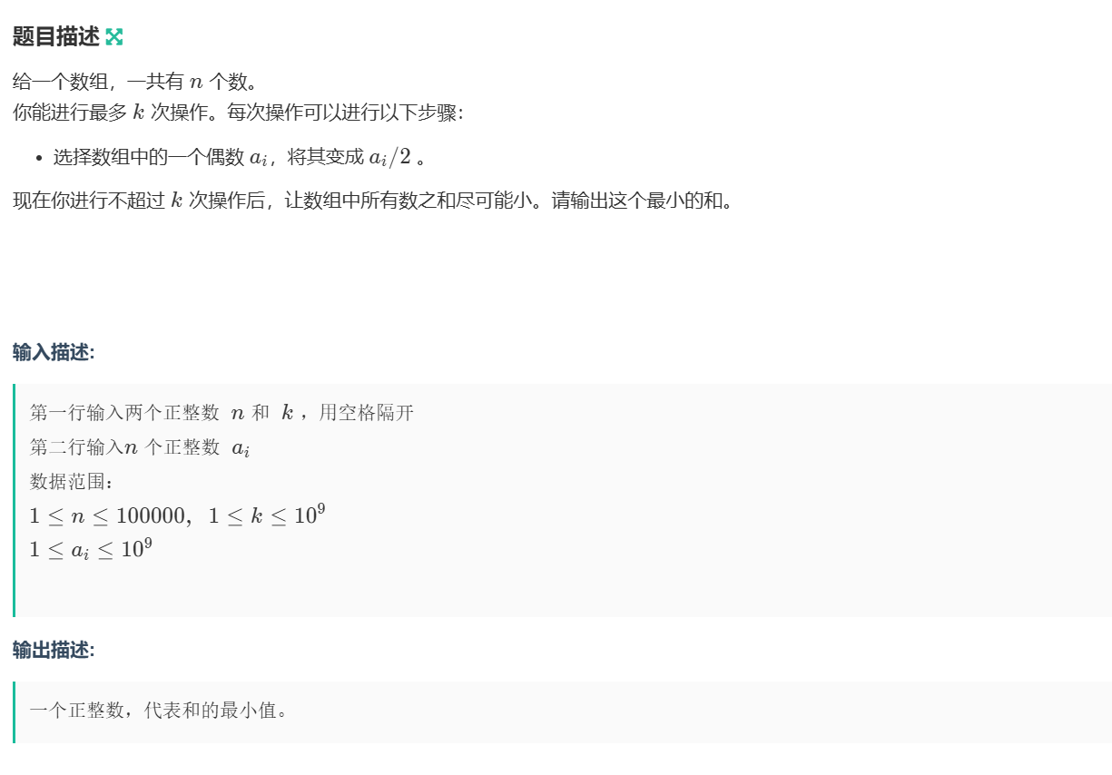 当堆中没有元素时,k可能还不为0,所以在进行除2操作时还需注意,堆里有元素可以用来除2操作