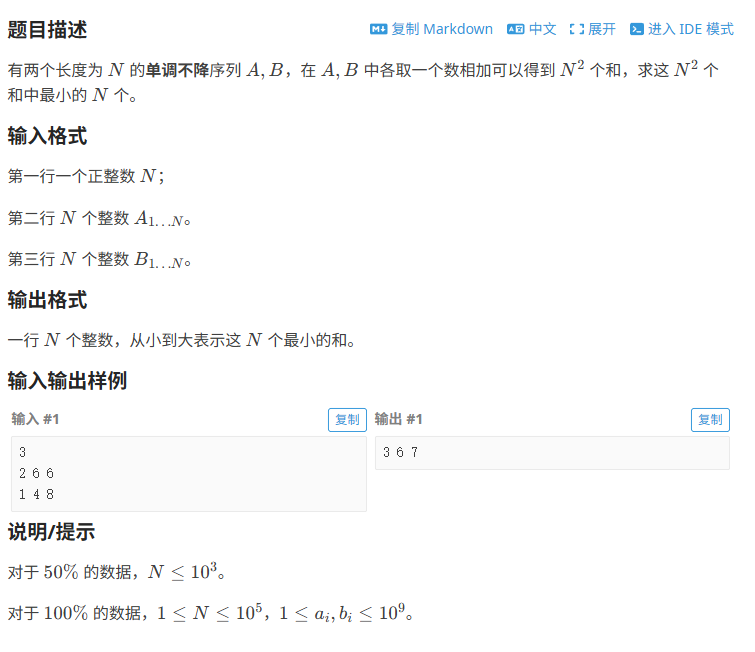 如下图所示,结构体保存a值的下标,b值的下标,已经a值b值相加的结果,小根堆比较a值b值相加的结果