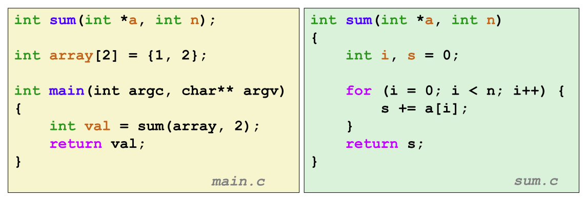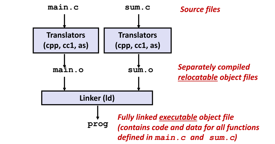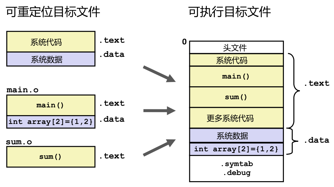 main.o,sum.o) - 输出:完全链接的可执行文件(包含所有函数代码和数据)