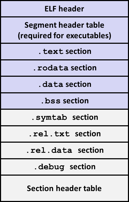 .symtab:符号表.rel.text:.text节的重定位信息.rel.data:.data节的重定位信息.debug:调试信息(使用gcc -g时生成)