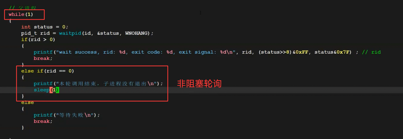 pid_t rid = waitpid(id, &status, WNOHANG);