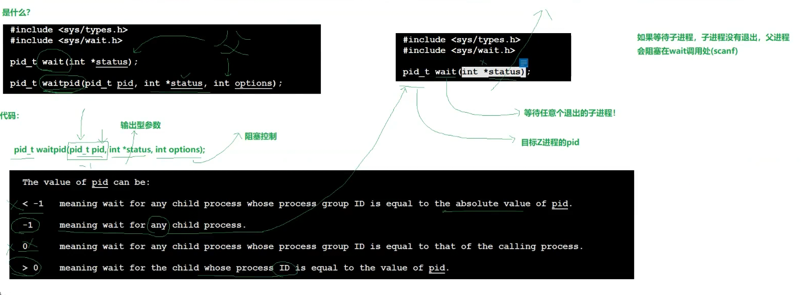 Pid > 0.等待其进程ID与pid相等的⼦进程。