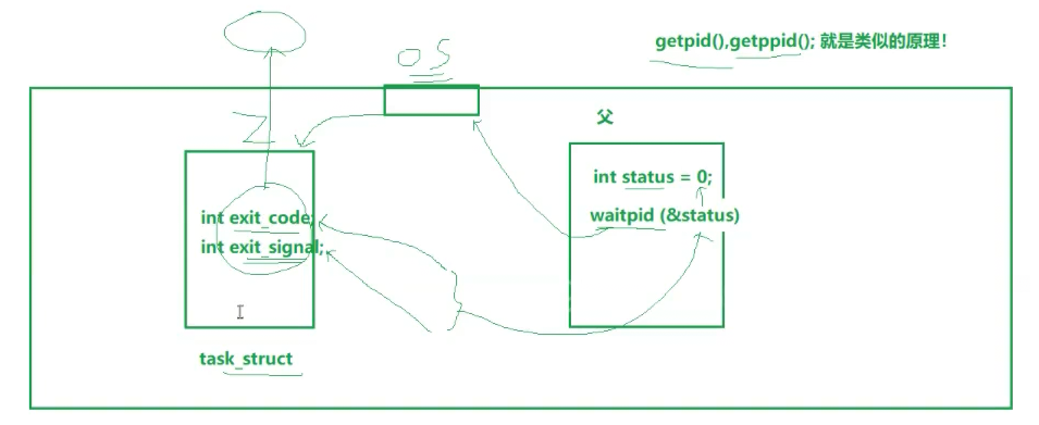 父进程调用系统调用,操作系统取子进程拿到,返回给父进程