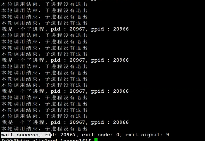 WNOHANG: 若pid指定的⼦进程没有结束,则waitpid()函数返回0,不予以等
