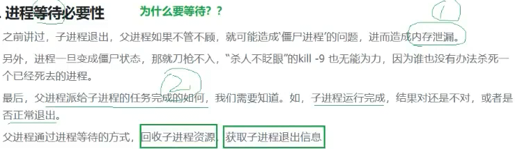 2.回收子进程资源(最重要的), 获取子进程退出信息(可选)。