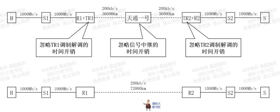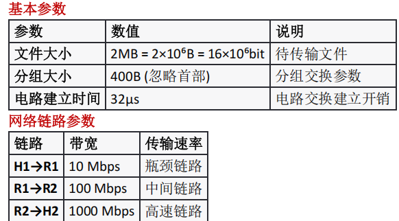 - 报文交换( Tms ):逐跳传输 1.6+0.16+0.016=1.776s;