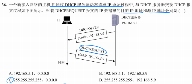 - REQUEST 报文需广播发送以确保 DHCP服务器接收,目的 IP 为255.255.255.255;