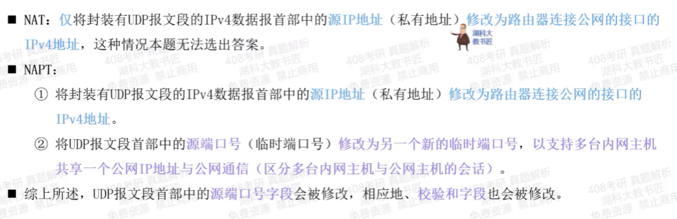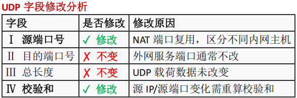 [NAT 对 UDP 报文首部字段的修改(端口号、校验和的变化逻辑)](#NAT 对 UDP 报文首部字段的修改(端口号、校验和的变化逻辑))