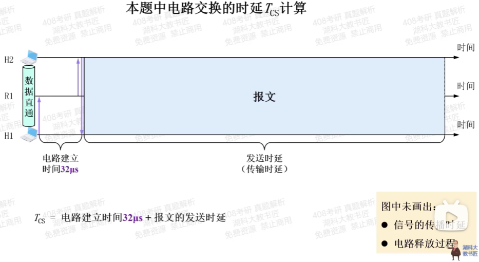 - 电路交换( Tcs ):建立时间 32μs + 数据