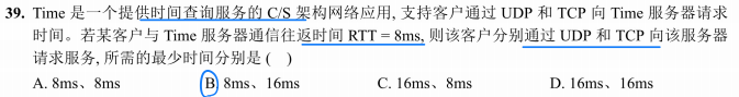 • UDP :请求 → 响应 = 1 RTT = 8ms