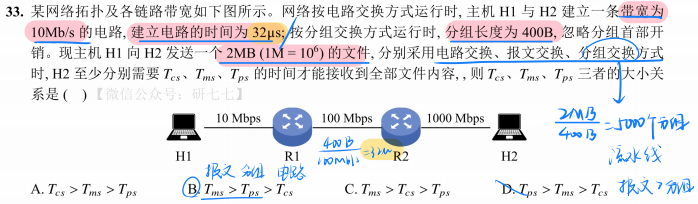 - 时延关系 Tms>Tps>Tcs ,选 B 。