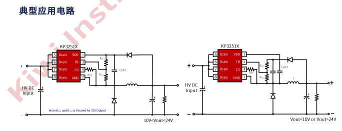 集成 500V高压 MOSFET和高压启动电路优化轻载噪音、提升系统抗干扰能力多模式控制、无异音工作支持降压和升降压拓扑默认 12V输出(FB脚悬空)待机功耗<50mW