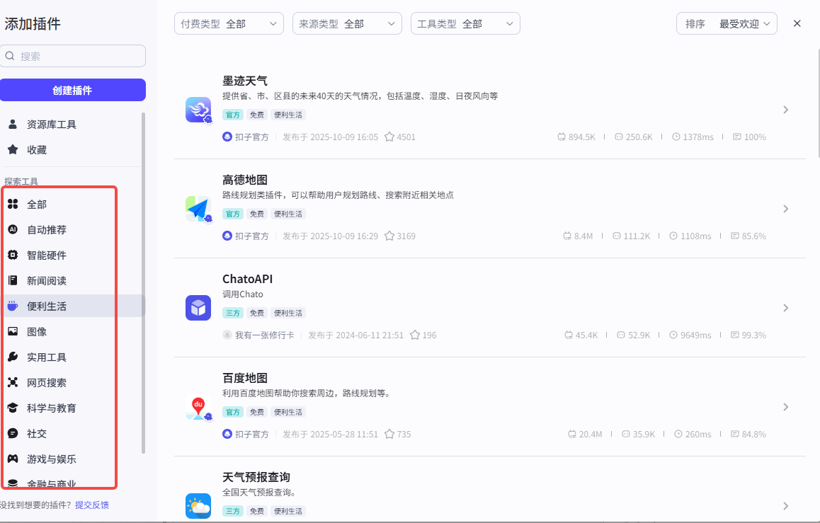 在Coze中,插件是扩展智能体功能的模块化工具,通过调用外部服务、数据接口或预设逻辑,使智能体具备实时交互、动态决策和场景化服务能力。
