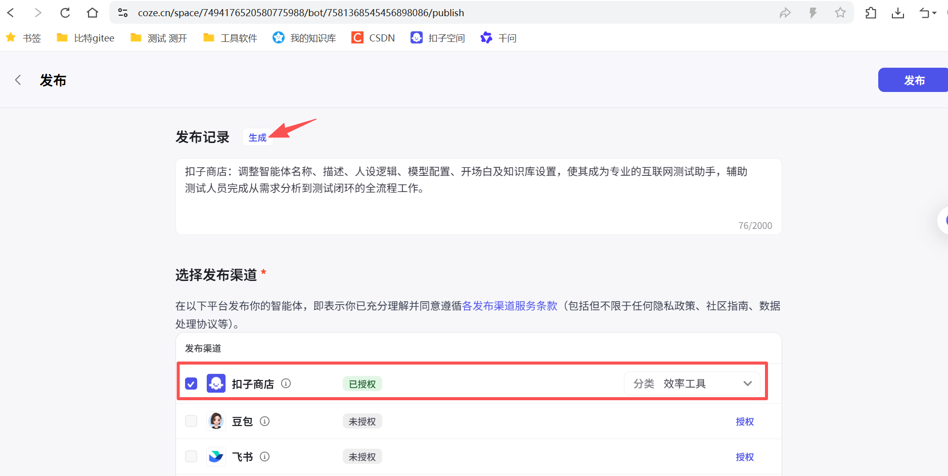 智能体的发布