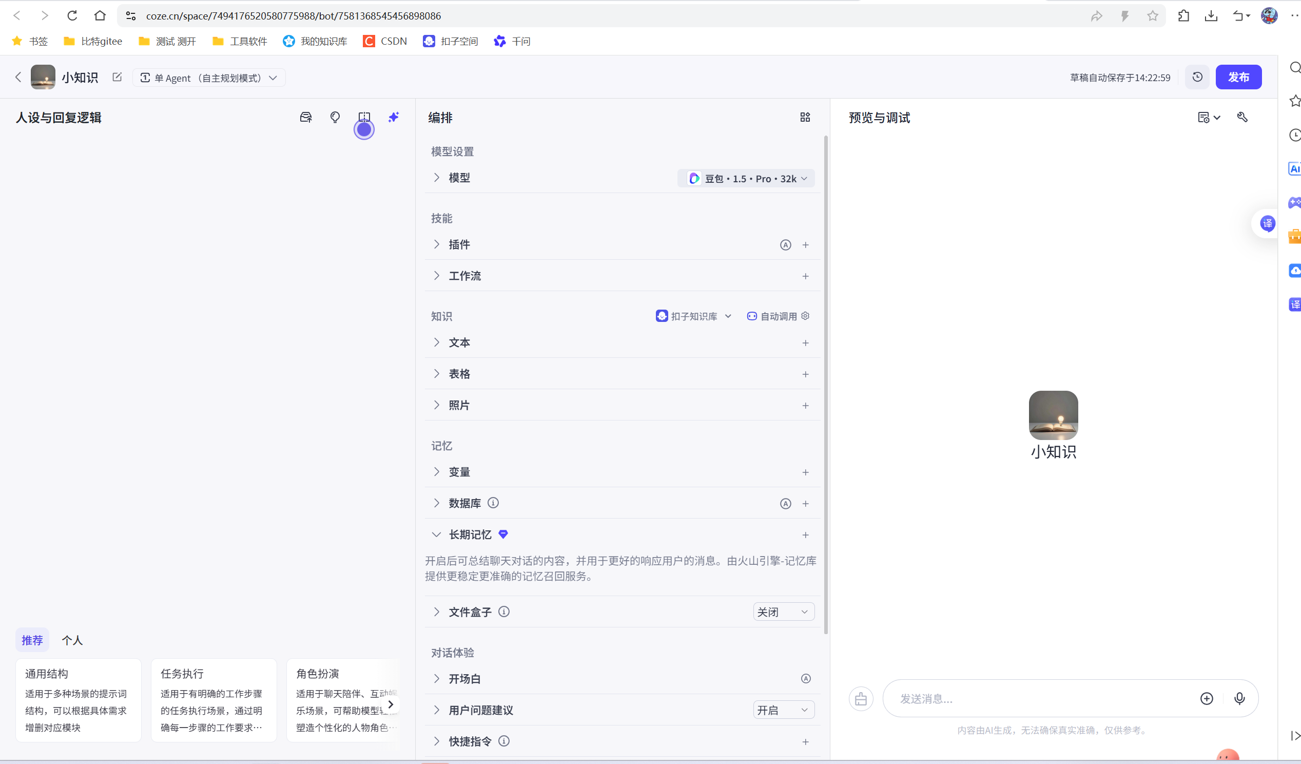 之前聊到的知识库资源,插件资源,和现在的数据库资源,都是为了丰富智能体的能力。