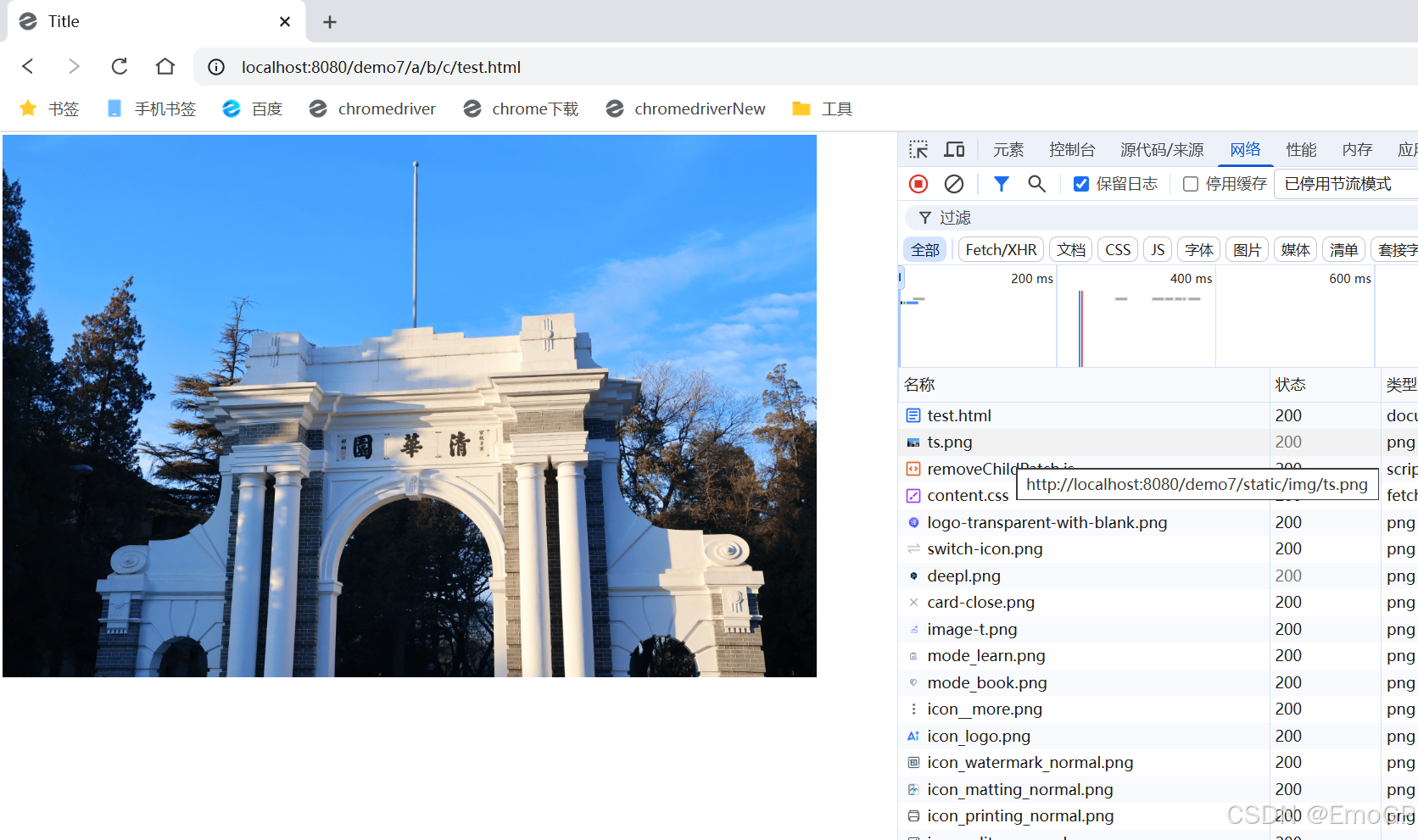 将该路径放在test.html中依然能够访问