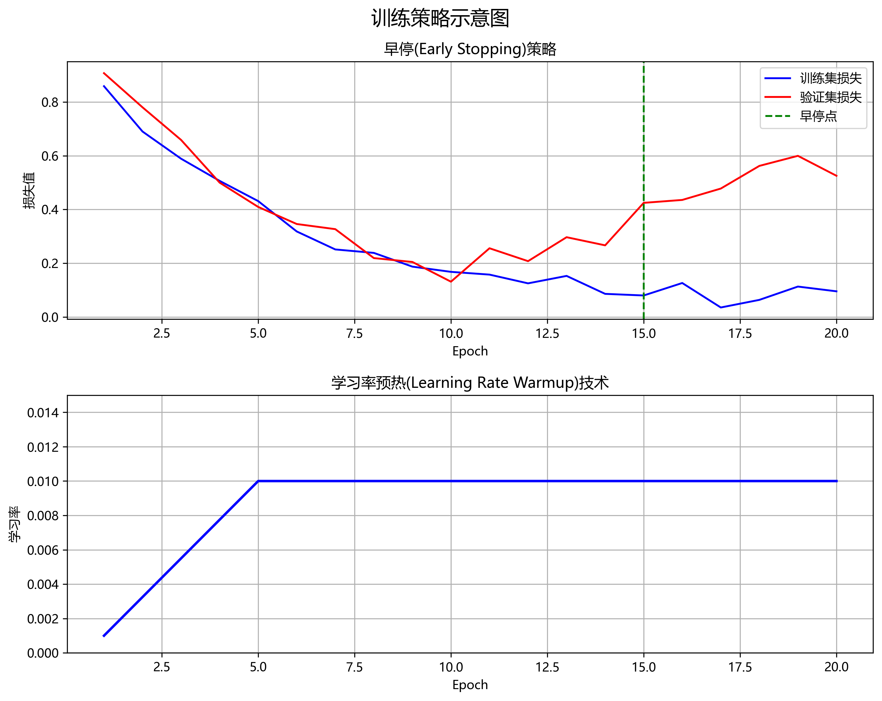 在训练过程中,我们采用早停(Early Stopping)策略,当验证集性能连续多个epoch没有提升时停止训练,避免过拟合。此外,我们还使用了学习率预热(Learning Rate Warmup)技术,在训练初期使用较小的学习率,然后逐渐增加到预设值,有助于稳定训练过程。