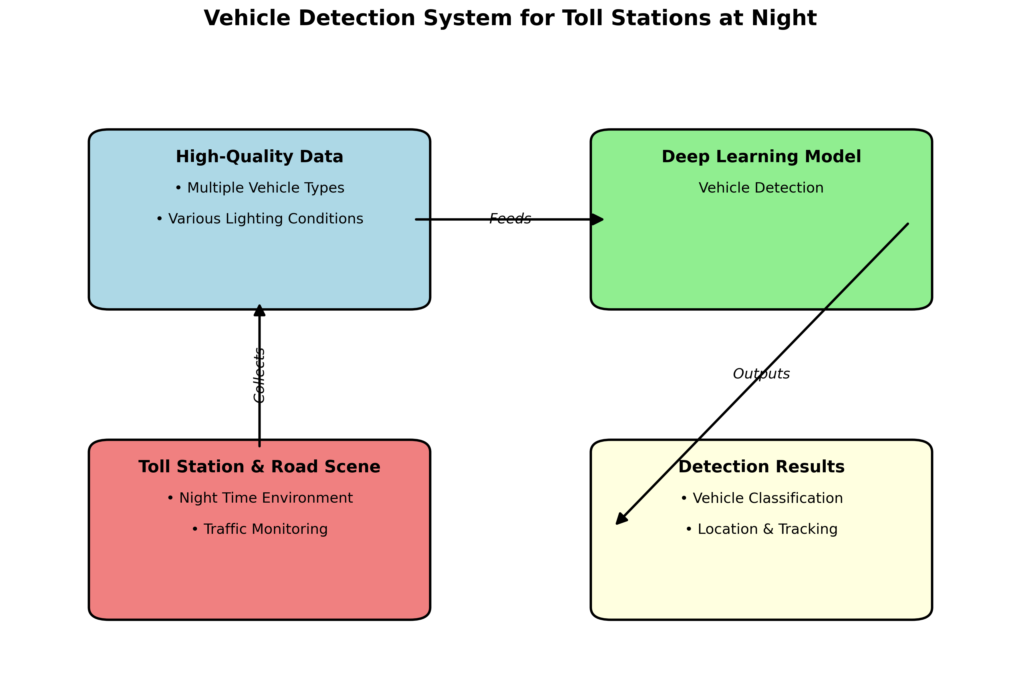 在实际应用中,准确的车辆检测与分类可以为收费站自动收费系统、交通流量统计、违章监测等功能提供基础数据支持。特别是在夜间环境下,人工监控效率低下且容易疲劳,自动化检测系统显得尤为重要。