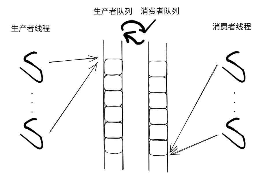 | 队列的数量 | 生产者一个队列、消费者一个队列 | 通过一次队列的交换减少了锁的竞争 |