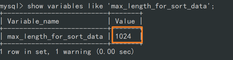 show variables like 'max_length_for_sort_data';