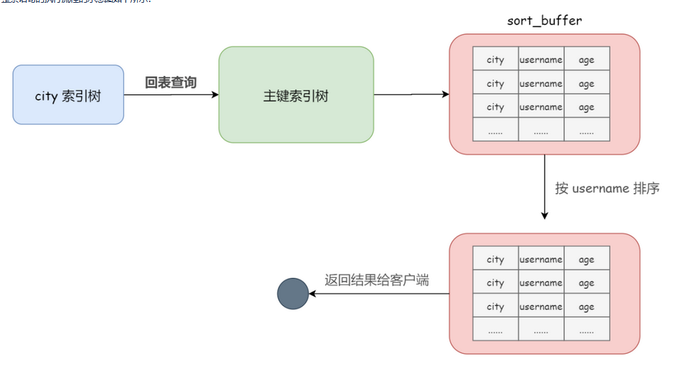 可以看出,整个排序过程,我们要查询的 city、username、age 全都参与了,所以,暂且把这个排序过程,称为全字段排序