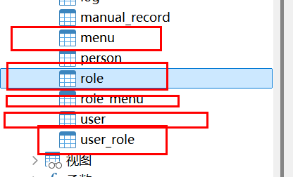 下面RBAC的权限认证例子需要用到下面的五张表,五张表之间相互配置实现该效果。